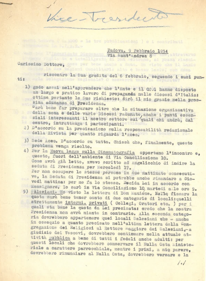 Lettera di mons. Francesco Dalla Zuanna, presidente dell'ACEC a Floris Luigi Ammannati, vice presidente