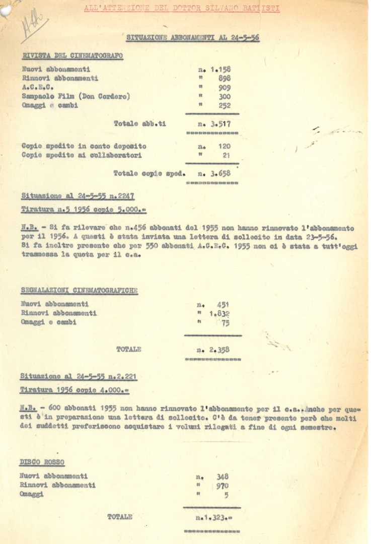 "Situazione abbonamenti al 24-5-56"