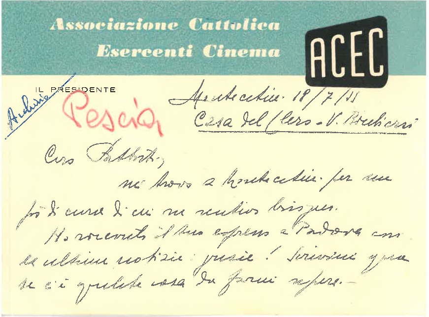 | Soggetto conservatore | ACEC - Associazione cattolica esercenti cinema |