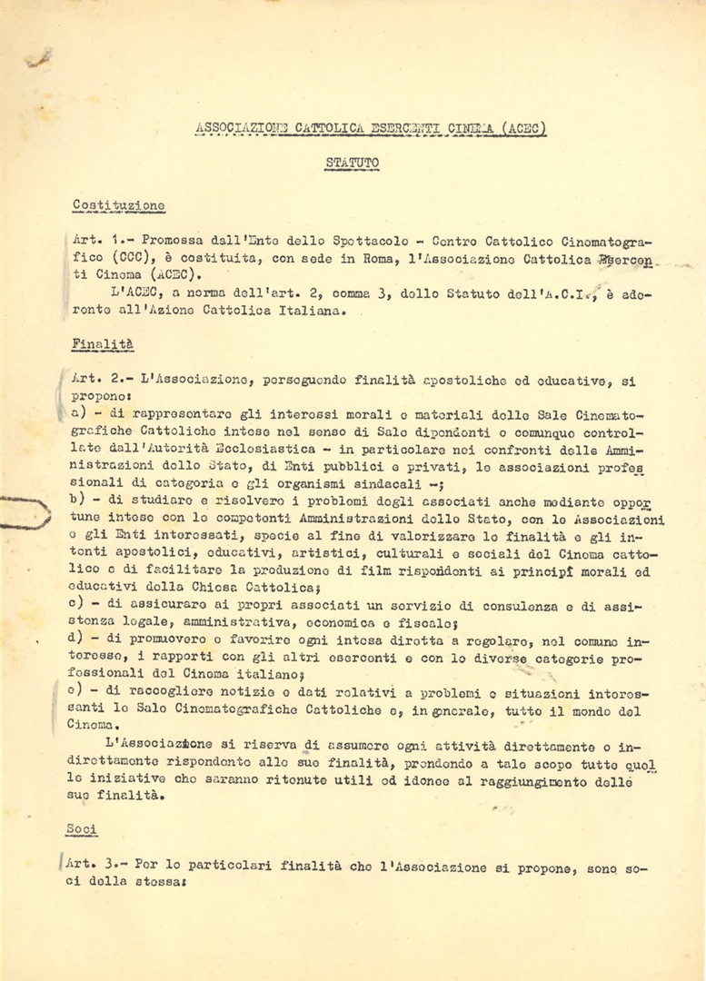 "Associazione cattolica esercenti cinema - ACEC. Statuto"