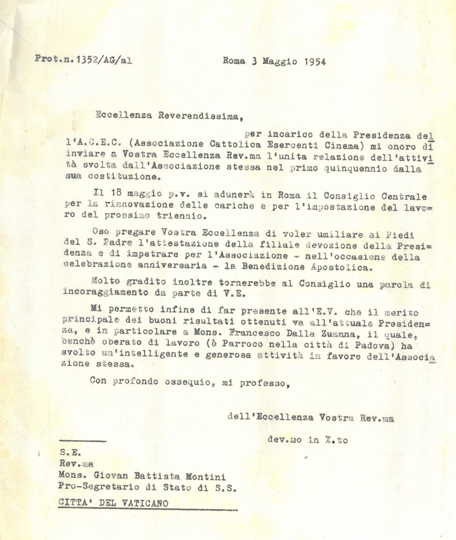 Lettera a Giovanni Battista Montini, pro-segretario di Stato di Sua Santità