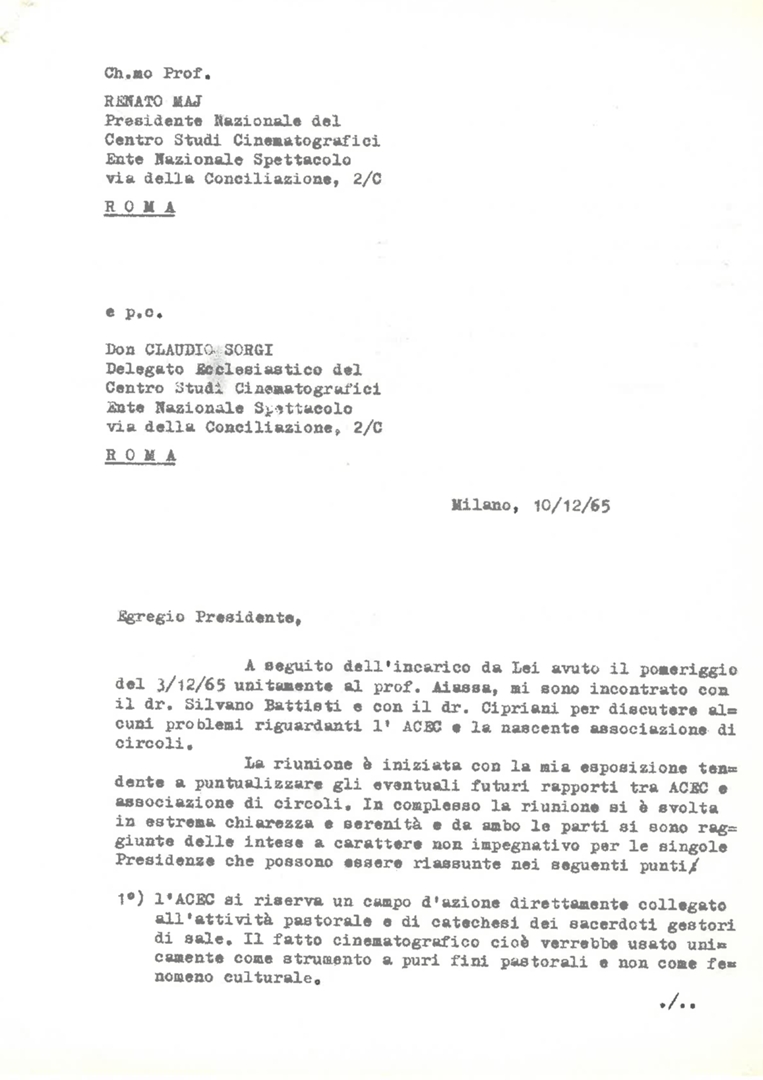 Franco Bollati riferisce a Renato May sui rapporti con l'ACEC e sulla nascente associazione di circoli. Dattiloscritto
