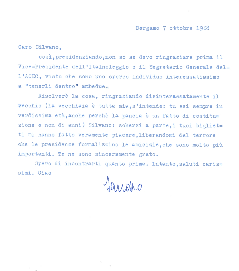 Sandro Zambetti manifesta la sua amicizia ed esprime i suoi ringraziamenti a Silvano Battisti. Dattiloscritto