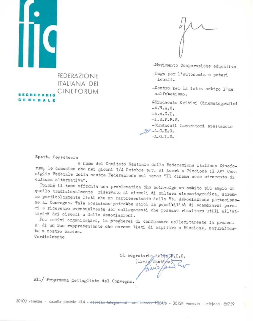 XV° Consiglio federale della Federazione Italiana Cineforum - FIC, Riccione 1-4 ottobre 1971. Programma