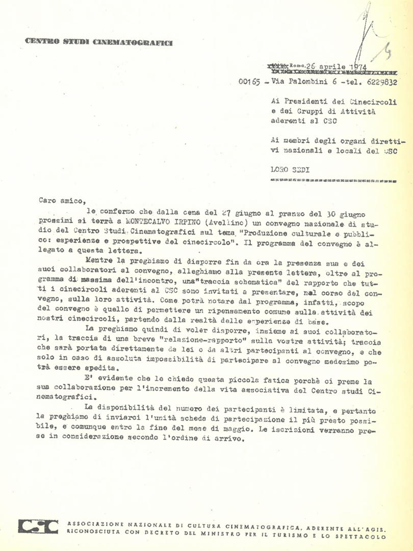 | Destinatario | CSC (Centro Studi Cinematografici) |