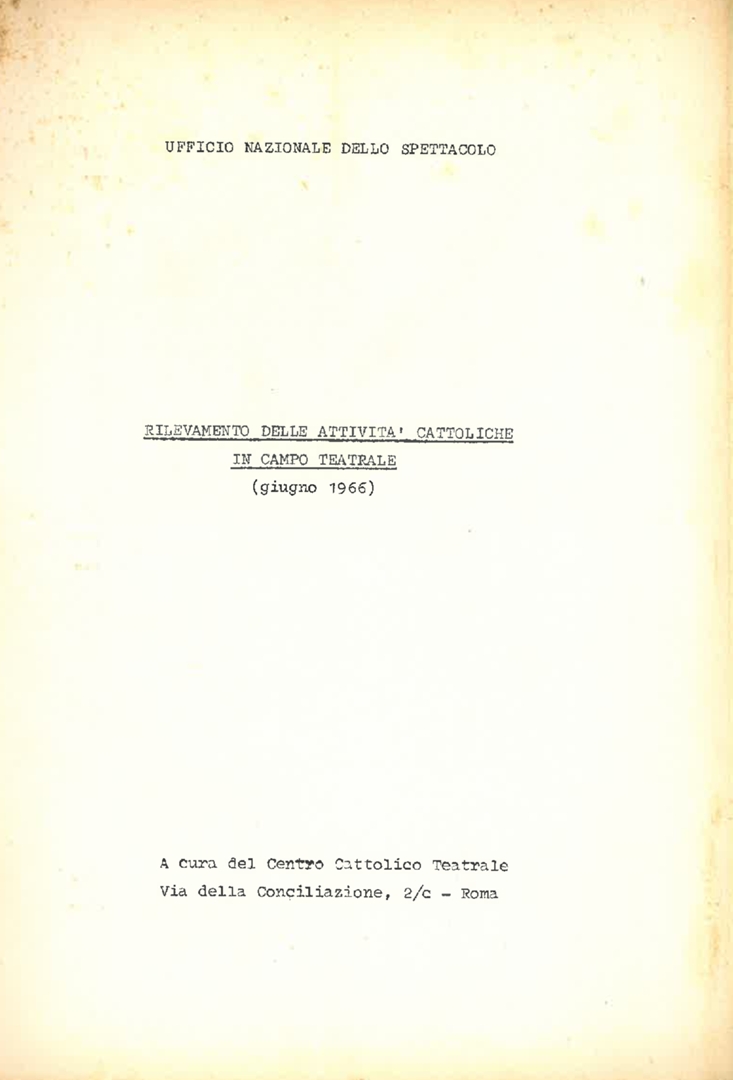 "Ufficio nazionale dello spettacolo. Rilevamento delle attività cattoliche in campo teatrale (giugno 1966), a cura del Centro cattolico teatrale"