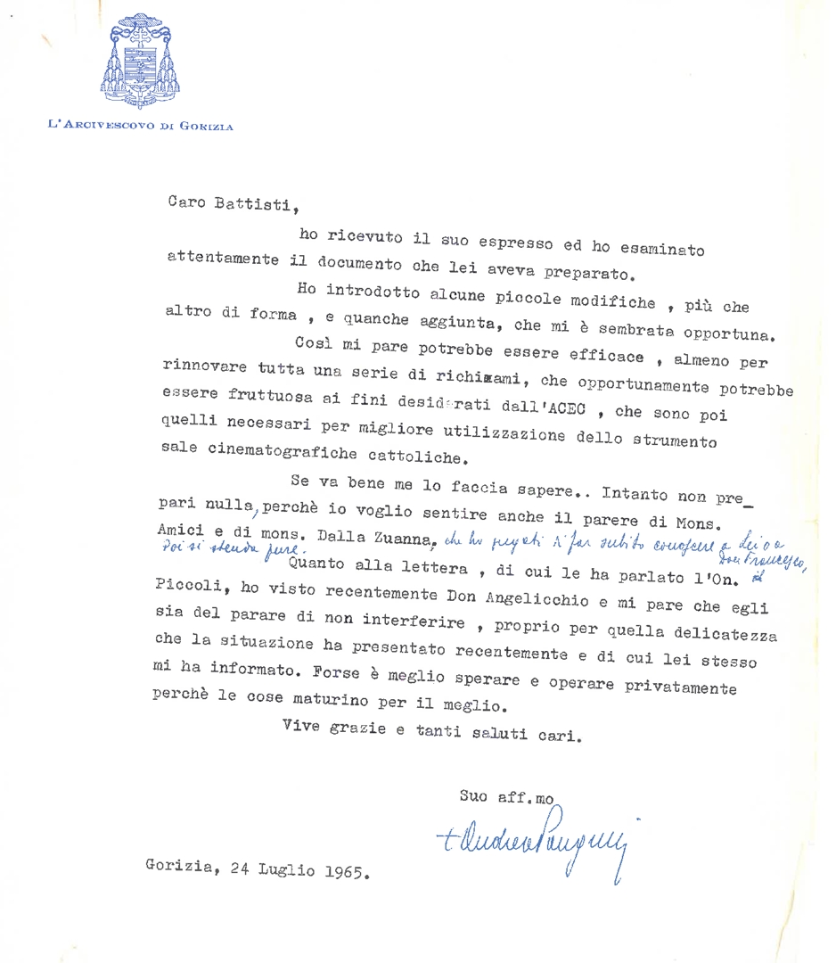 Con lettera di trasmissione di mons. Andrea Pangrazio, segretario della Commissione CEI per le comunicazioni sociali e arcivescovo di Gorizia, a Silvano Battisti, segretario generale dell'ACEC. Dattiloscritto