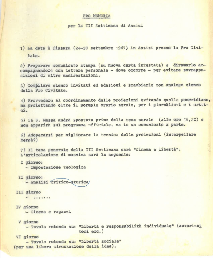 "Pro memoria per la III settimana di Assisi"