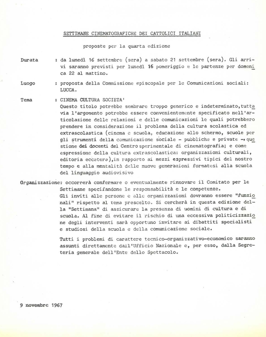 "Settimane cinematografiche dei cattolici italiani. Proposte per la quarta edizione"
