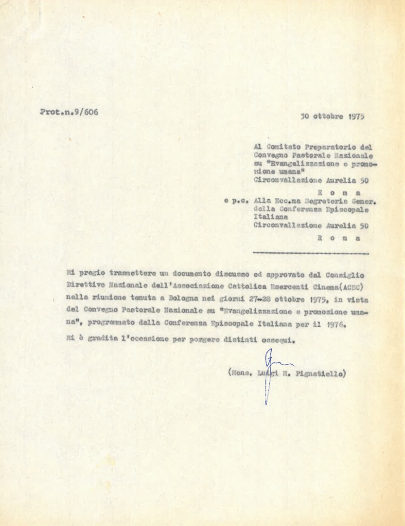 | Destinatario | Comitato Preparatorio del Convegno Pastorale su "Evangelizzazione e Promozione Umana" CEI |