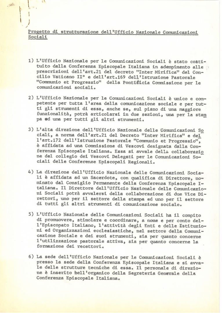 "Progetto di strutturazione dell'Ufficio nazionale comunicazioni sociali"