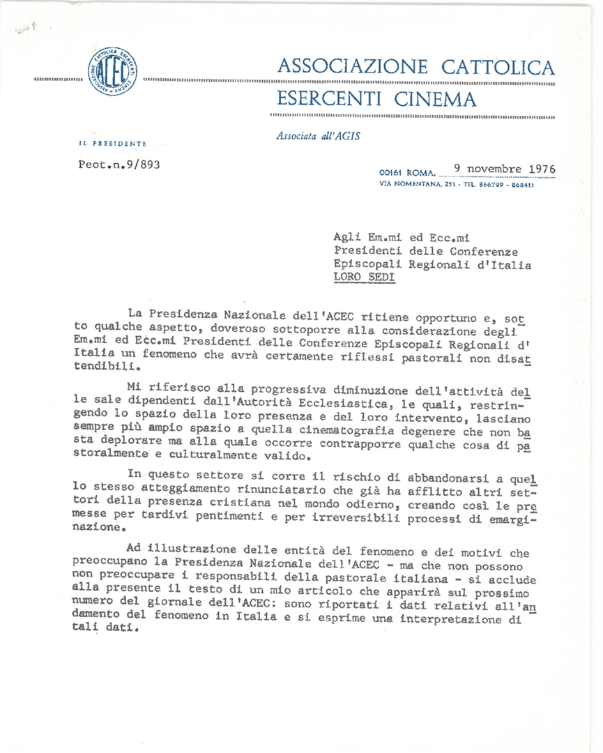 | Soggetto conservatore | ACEC - Associazione cattolica esercenti cinema |