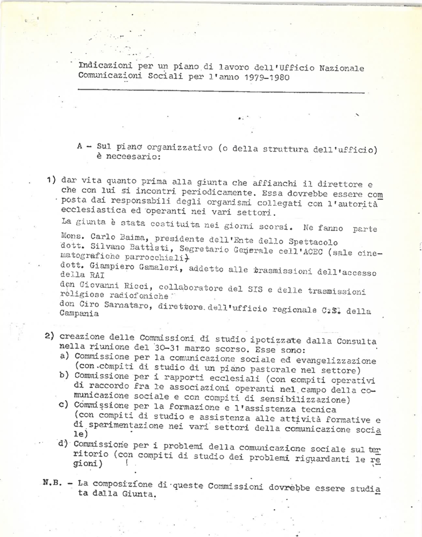 "Indicazioni per un piano di lavoro dell'Ufficio nazionale delle comunicazioni sociali per l'anno 1979-1980"
