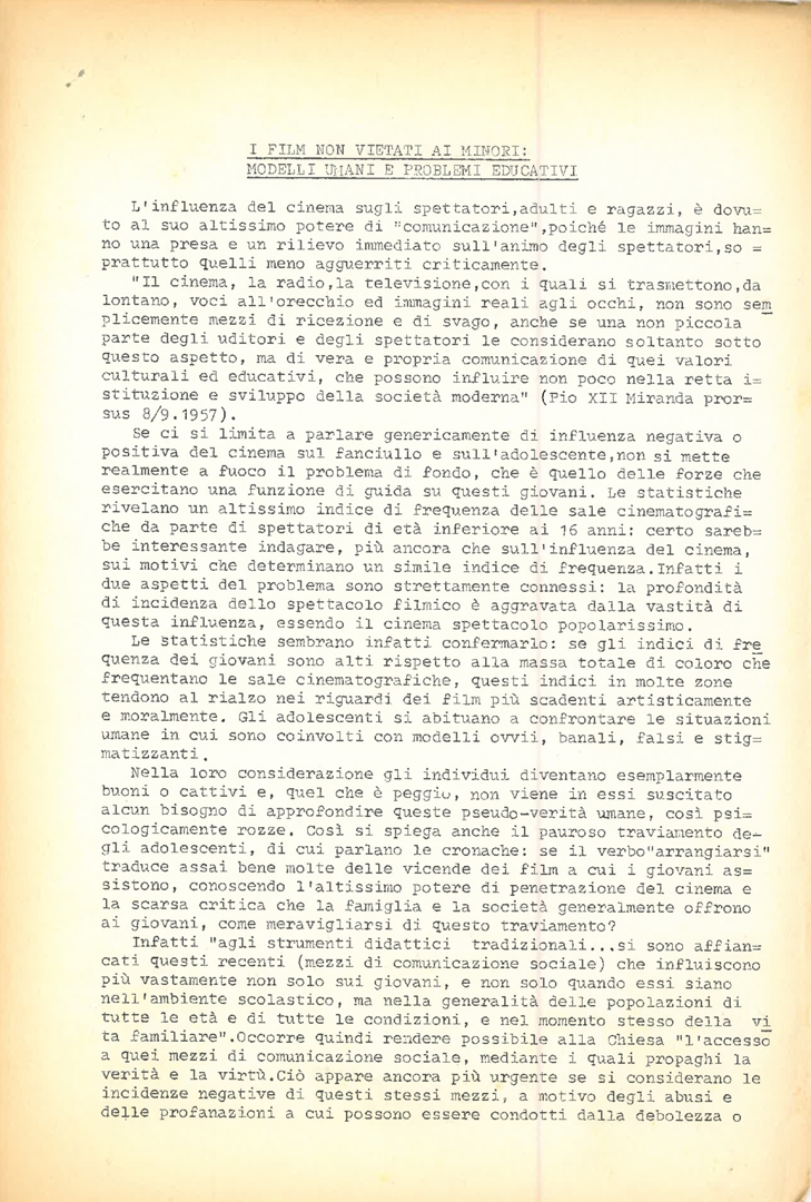Testo a cura del Centro studi cinematografici - CSC di Torino. Dattiloscritto