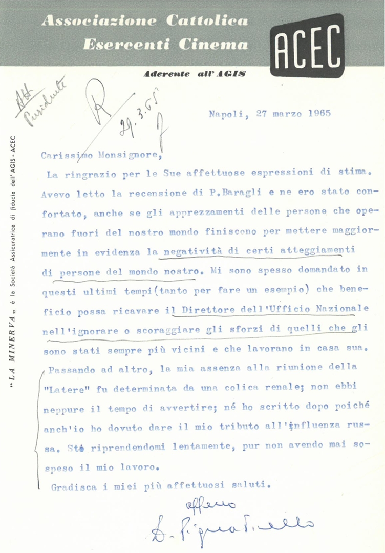 Don Luigi Pignatiello scrive a mons. Francesco Della Zuanna sulle relazioni all'interno del settore. Dattiloscritto