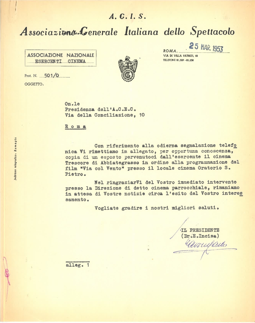 | Soggetto conservatore | ACEC - Associazione cattolica esercenti cinema |