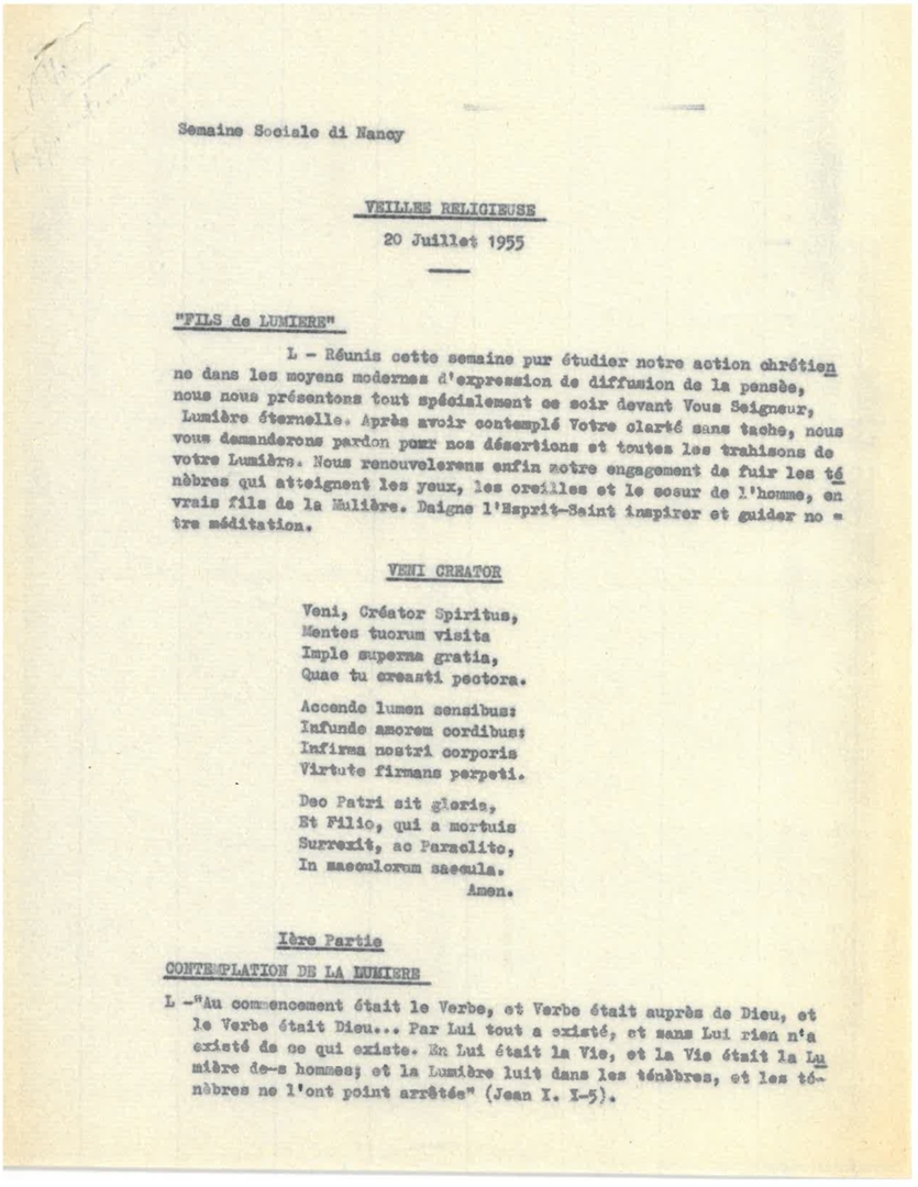 "Semaine sociale de Nancy. Veillée religieuse, 20 juillet 1955"