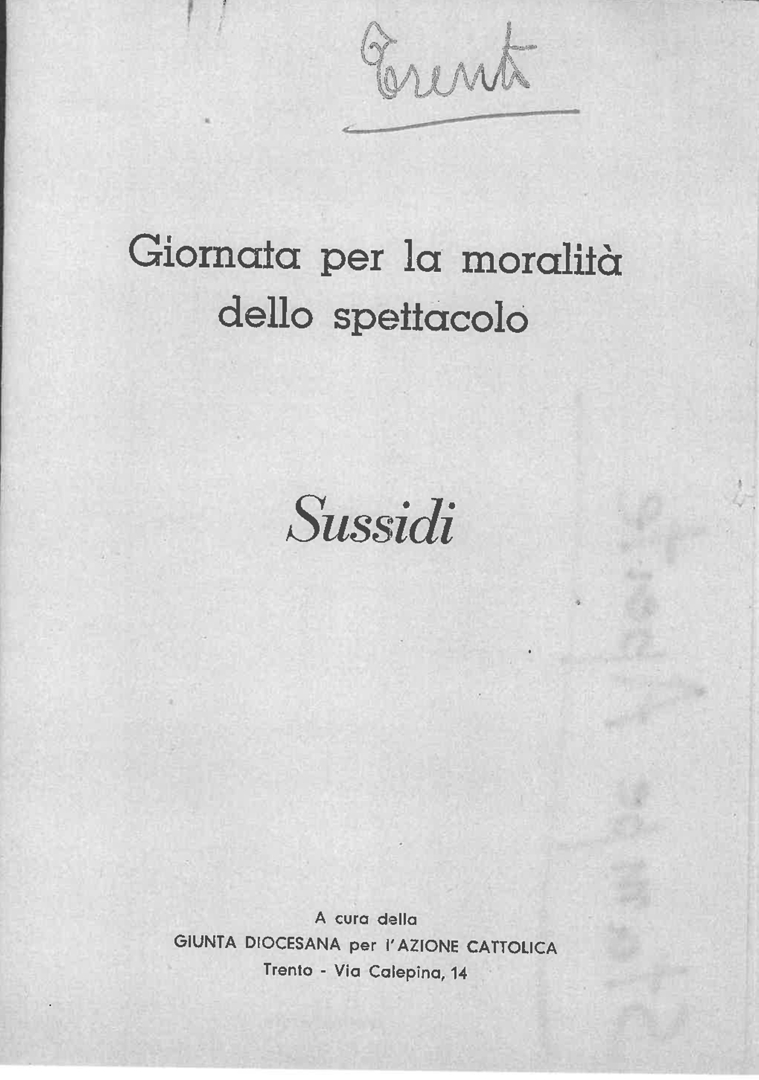"Giornata per la moralità dello spettacolo. Sussidi" a cura della Giunta diocesana dell'Azione cattolica italiana di Trento