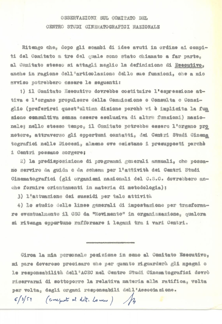 "Osservazioni sul Comitato del Centro studi cinematografici nazionale"