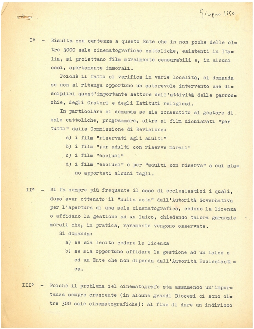 Temi (keywords PRIN 2012) | ACEC cinema immorale provvedimenti disciplinari sale parrocchiali |