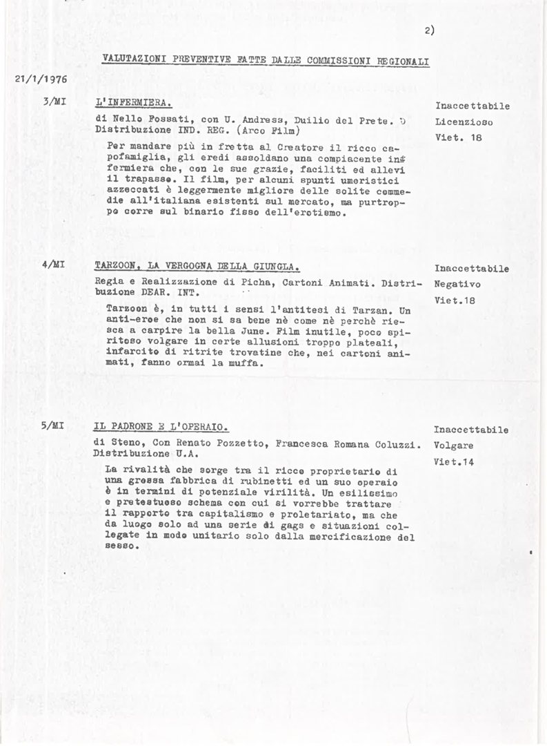 Schede dei film soggetti a revisione da parte delle commissioni regionali. Dattiloscritto