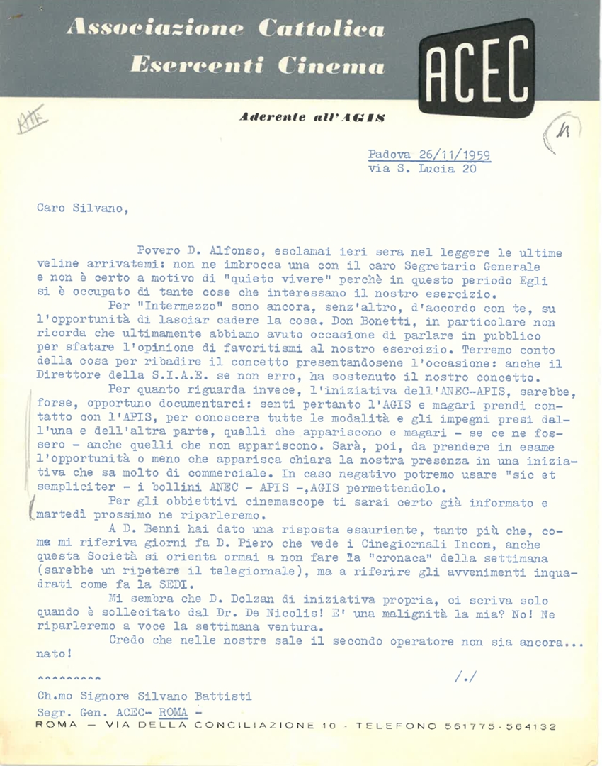 | Soggetto conservatore | ACEC - Associazione cattolica esercenti cinema |