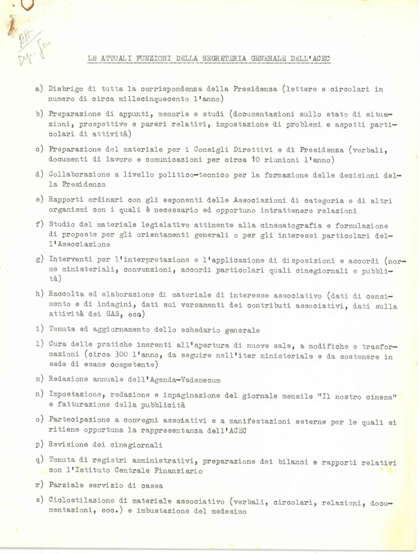 "Le attuali funzioni della Segreteria generale dell'ACEC"