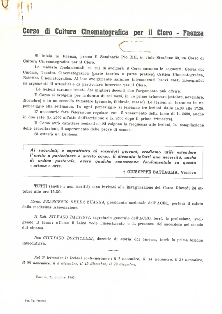 "Corso di cultura cinematografica per il clero - Faenza"