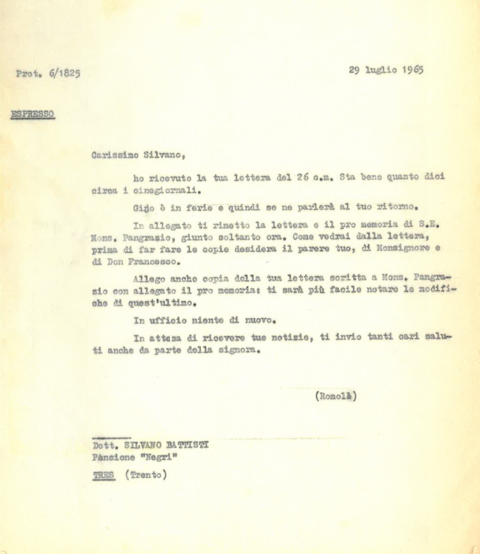 Lettera di Romolo Barletta a Silvano Battisti, segretario generale dell'ACEC