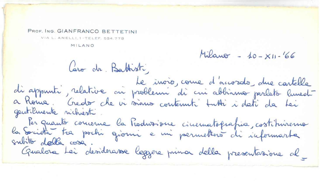 Appunti del prof. Gianfranco Bettetini, docente di storia e critica del cinema. Con lettera di trasmissione a Silvano Battisti, segretario generale dell'ACEC. Manoscritto e dattiloscritto