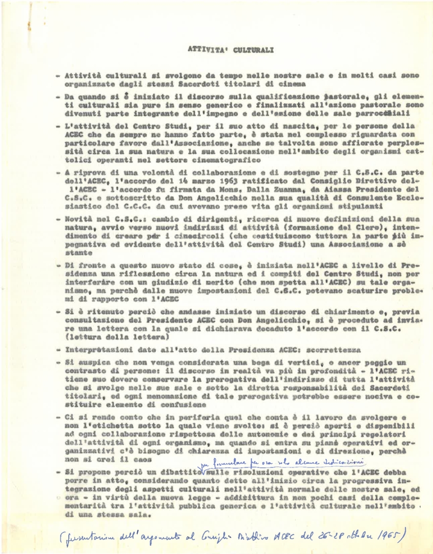 Documento da presentare al Consiglio direttivo dell'ACEC del 26-28 ottobre 1965. Dattiloscritto