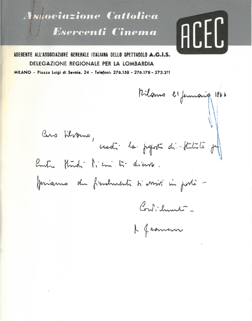 | Soggetto conservatore | ACEC - Associazione cattolica esercenti cinema |