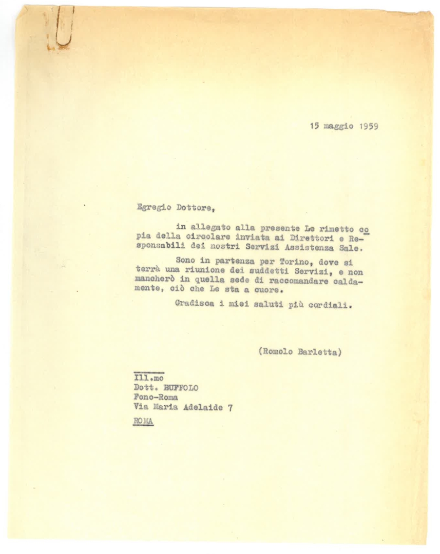 Lettera di Romolo Barletta a Ruffolo della Fono-Roma