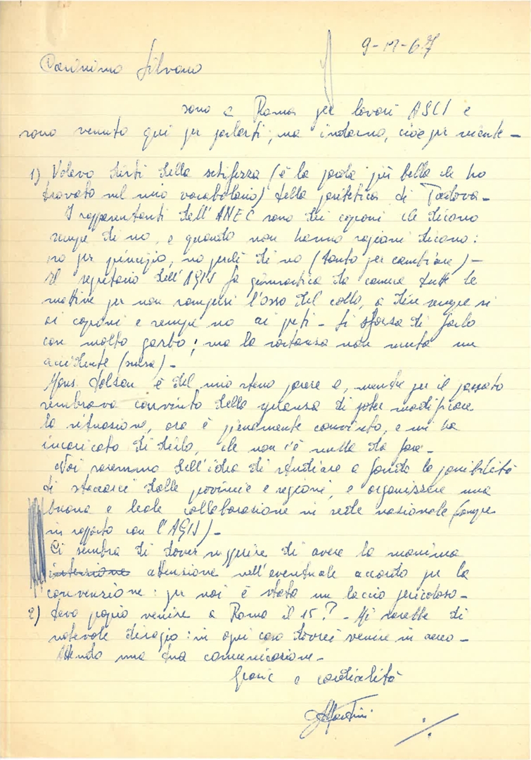 Don Angelo Martini scrive e a Silvano Battisti su ANEC e AGIS. Manoscritto