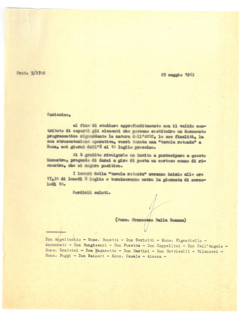 Con lettera di trasmissione di mons. Francesco Dalla Zuanna a destinatari diversi. Dattiloscritto