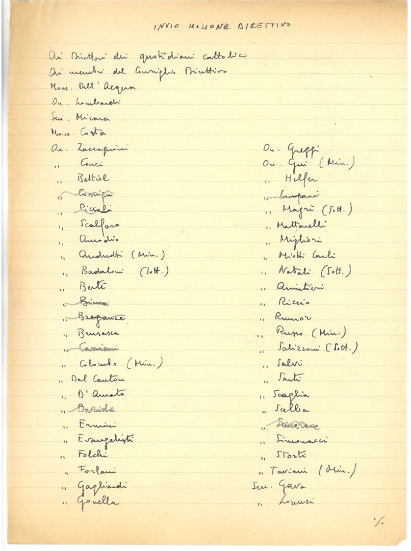 Richieste del Consiglio direttivo dell'ACEC a seguito della riunione dell'11-12 dicembre 1963. Con elenco dei destinatari della mozione. Manoscritto e dattiloscritto