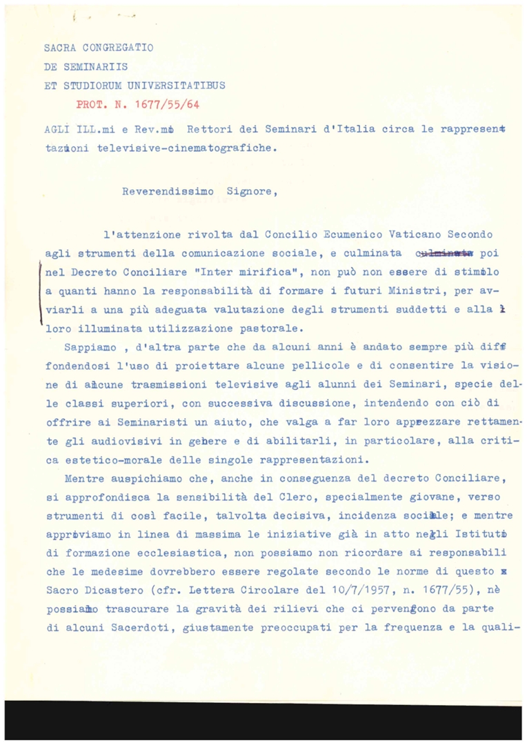| Destinatario | Rettori dei Seminari d'Italia |