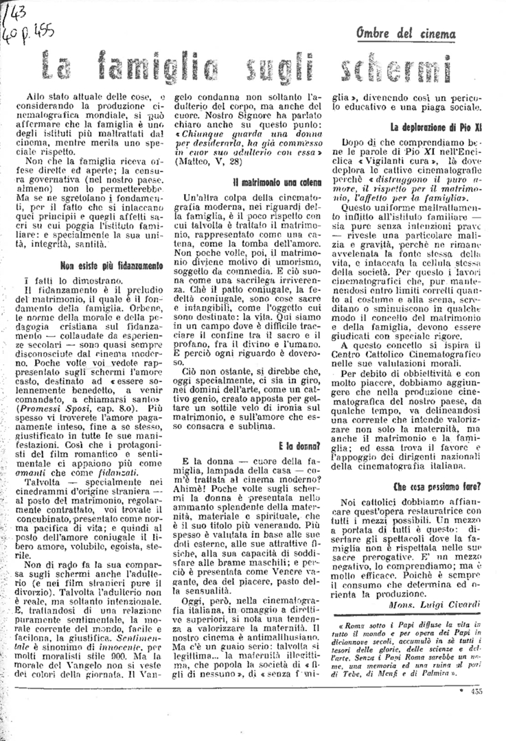 Temi (keywords PRIN 2012) | CCC (Centro Cattolico Cinematografico) Vigilanti Cura documenti del magistero e disposizioni dell'autorità ecclesiastica matrimonio e divorzio revisione cinematografica |
