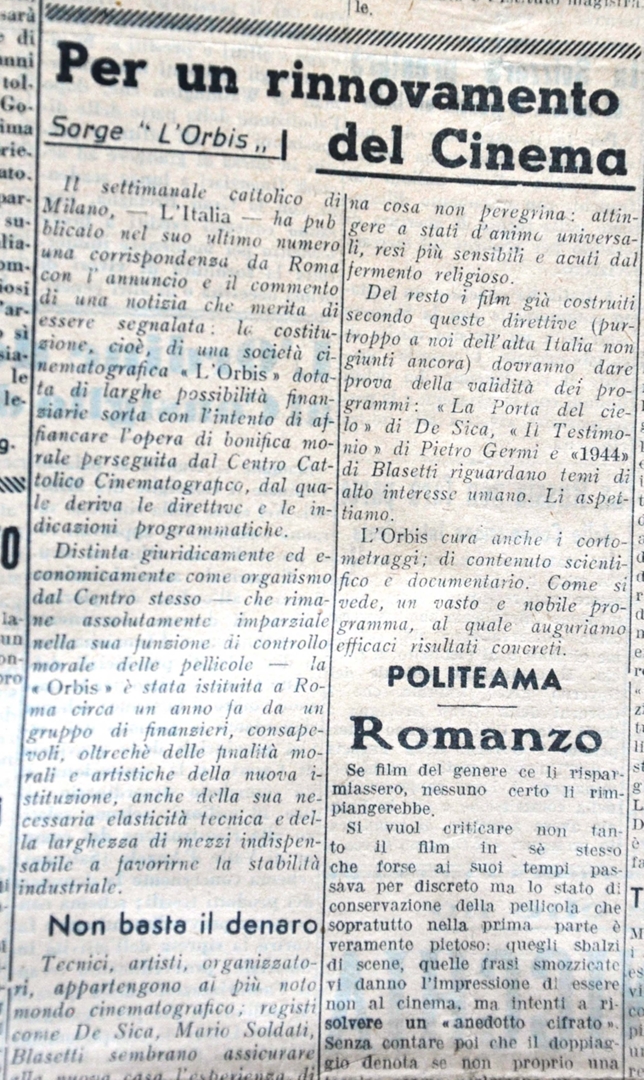 Temi (keywords PRIN 2012) | Alessandro Blasetti CCC (Centro Cattolico Cinematografico) Mario Soldati Orbis Vittorio De Sica produzione cinematografica cattolica |