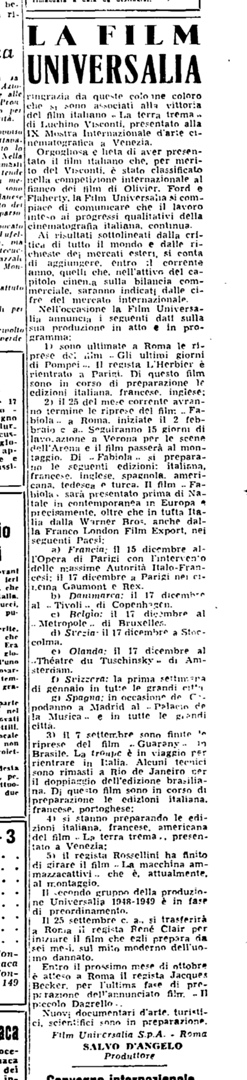 Film (keywords PRIN 2012) | Fabiola (Alessandro Blasetti) Guarany (Riccardo Freda) La macchina ammazzacattivi (Roberto Rossellini) La terra trema (Luchino Visconti) |