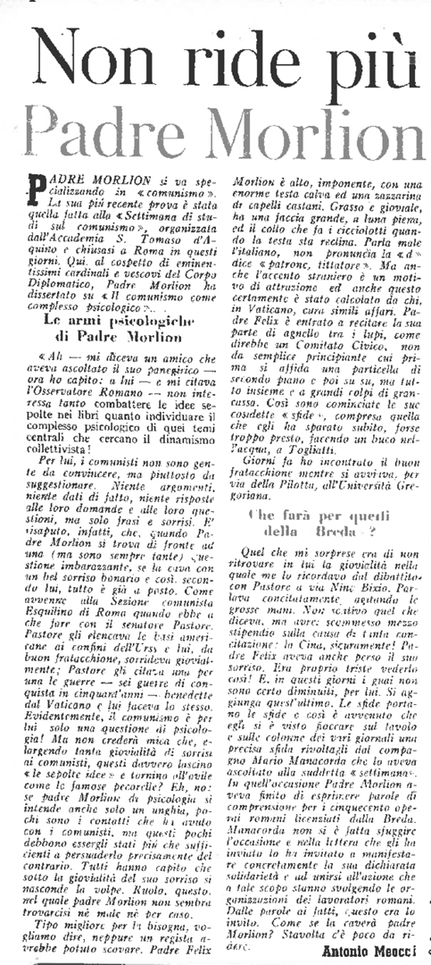 "Non ride più padre Morlion"