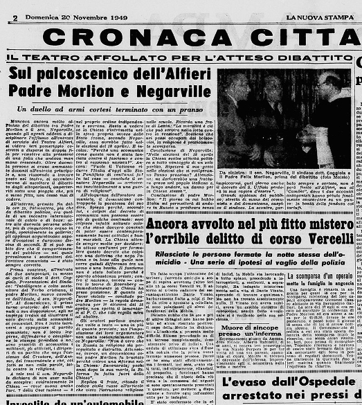 "Sul palcoscenico dell'Alfieri padre Morlion e Negarville"