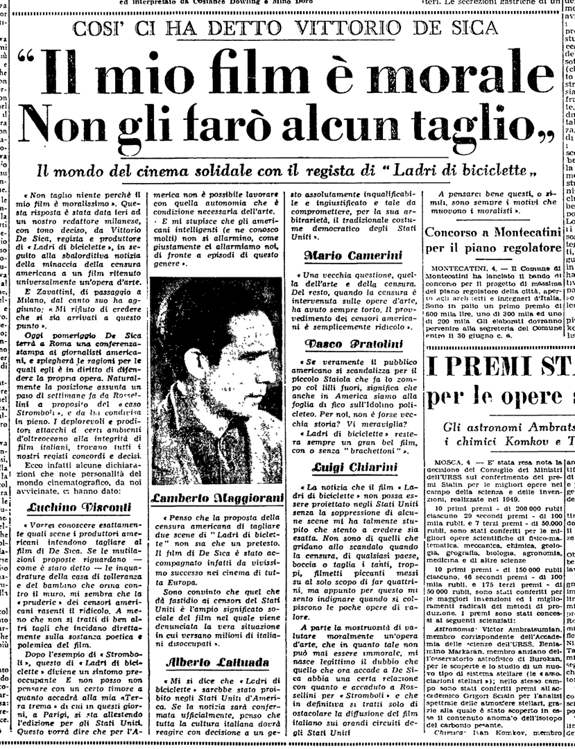 Temi (keywords PRIN 2012) | Alberto Lattuada Codice Hays (Production Code) Luchino Visconti Luigi Chiarini Vittorio De Sica cinema immorale prostituzione proteste contro la censura |
