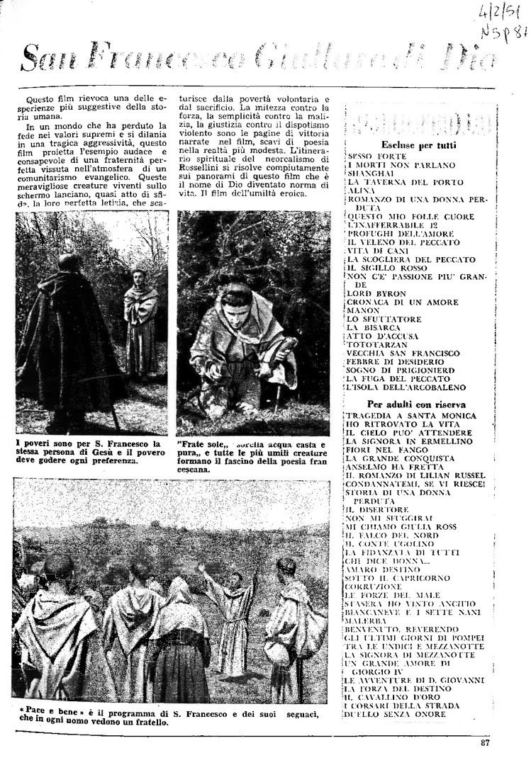 Film (keywords PRIN 2012) | Francesco giullare di Dio (Roberto Rossellini) |