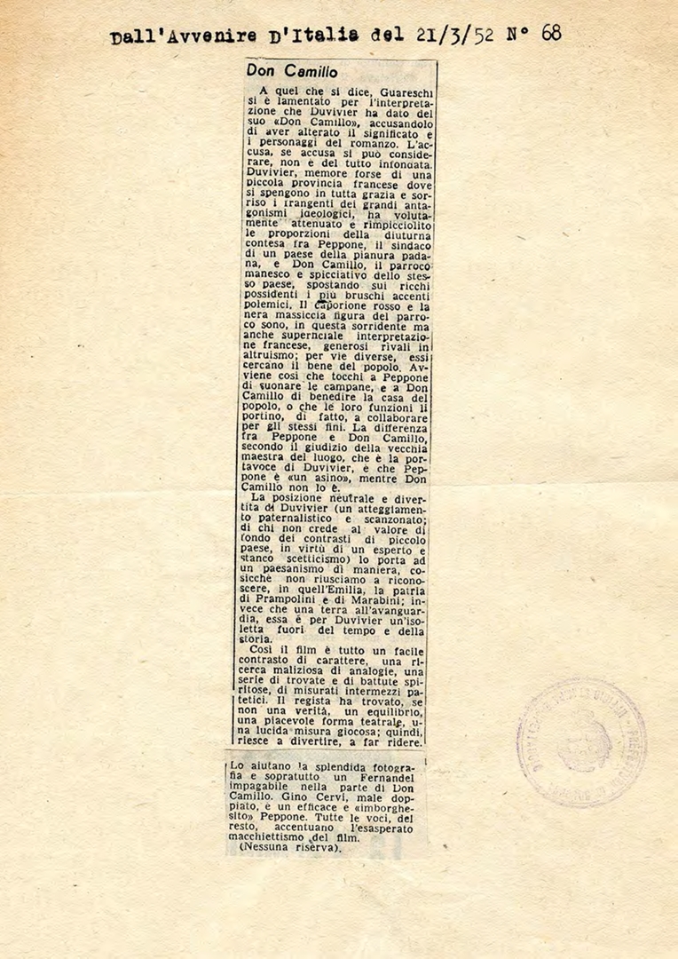 | Film (keywords PRIN 2012) | Don Camillo (Julien Duvivier) |