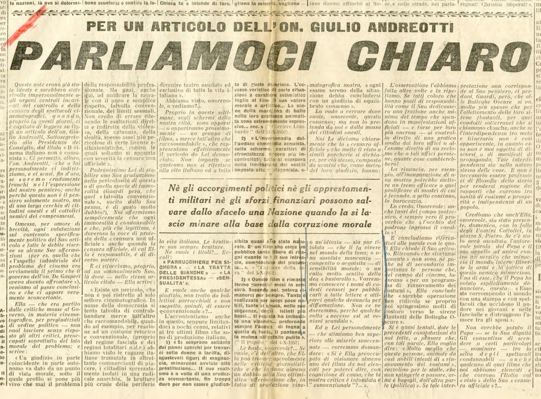 Temi (keywords PRIN 2012) | Giulio Andreotti Pio XII anticomunismo censura amministrativa cinema immorale osceno |
