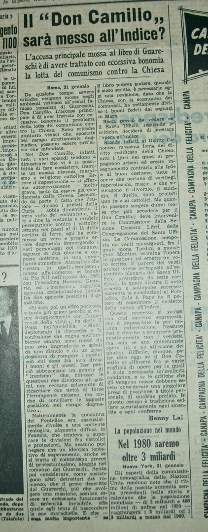 "L'accusa principale mossa al libro di Guareschi è di avere trattato con eccessiva bonomia la lotta del comunismo contro la chiesa"
