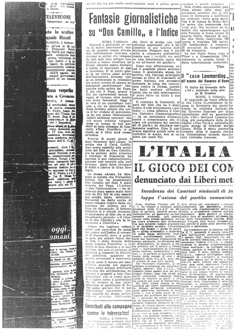 "Fantasie giornalistiche su don Camillo e l'indice"
