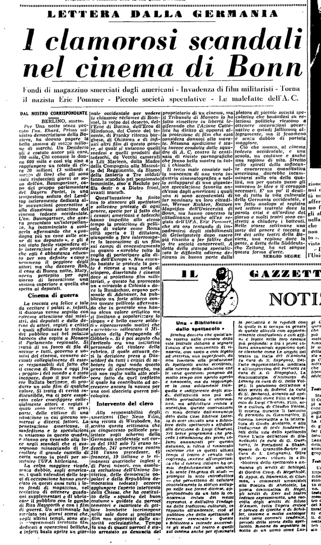 "Fondi di magazzino smerciati dagli americani - Invadenza di film militaristi - Torna il nazista Eric Pommer - Piccole società speculative - Le malefatte dell'A.C."