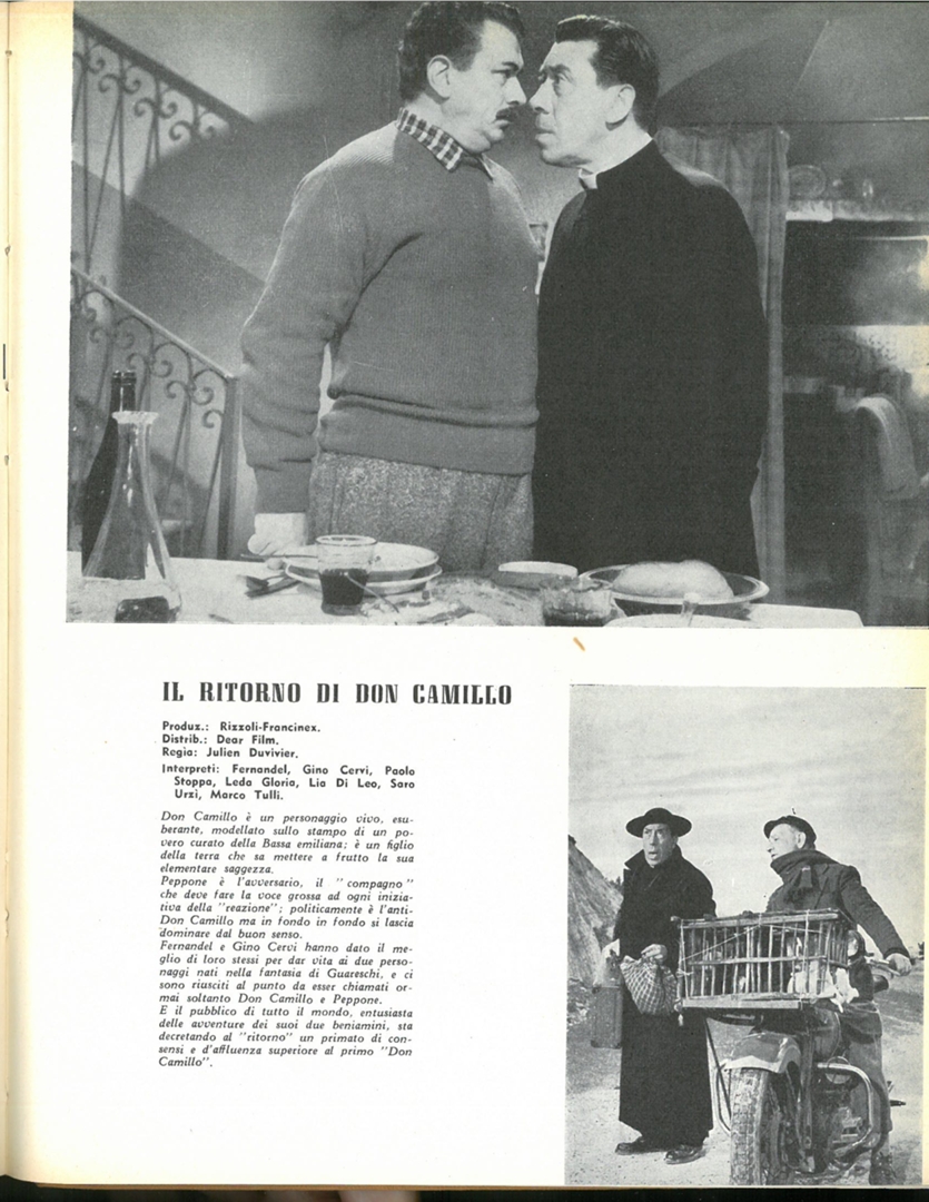 | Film (keywords PRIN 2012) | Don Camillo (Julien Duvivier) Il ritorno di don Camillo (Julien Duvivier) |